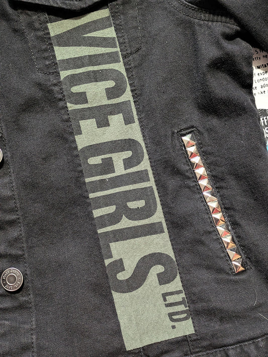 FOMO Collection - Collage Mudd Vice Girls / Face hand studded, hand stitched Denim Jacket - XL - 11936