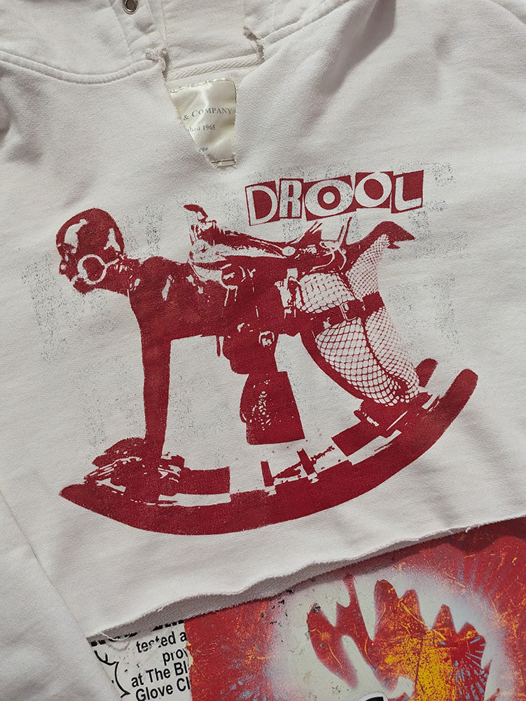 FOMO Collection - DISTRESSED Rubber Pony Raw Cut Crop Top Hoodie - XL - 12726